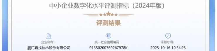 喜讯!嘉戎技术获评《中小企业数字化评测指标》三级认证